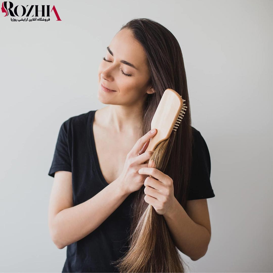 - ماساژ پوست سر: استفاده از برس چوبی باعث افزایش جریان خون در پوست سر شده و به رشد بهتر موها کمک می کند.